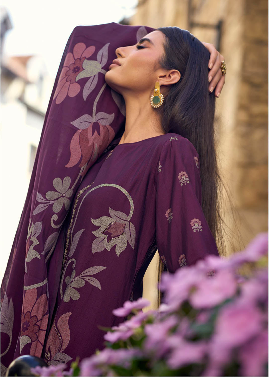 - Top- Pure Viscose Muslin Digital & Foil Print with Fancy Embroidery Work