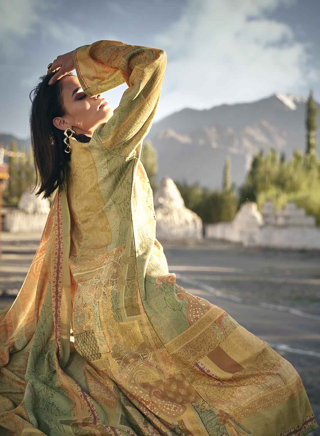 Pashmina Green Winter Salwar Suits Dress Material for Ladies