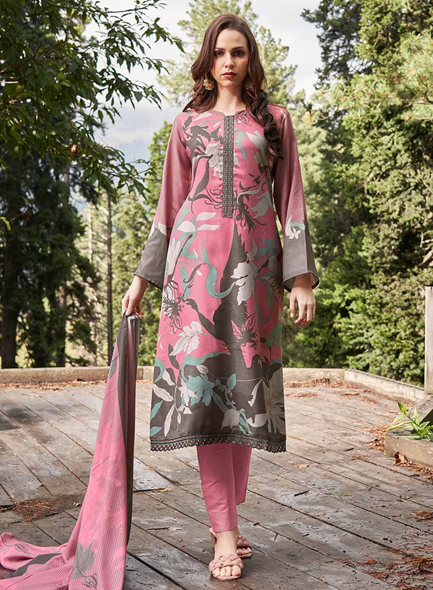 Pashmina Unstitched Pink Winter Suits Dress Material for Women