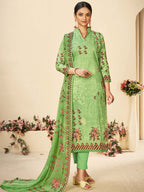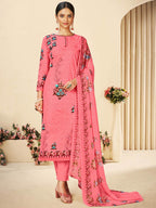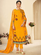 Orange Printed Cotton Unstitched Suit With Chiffon Dupatta