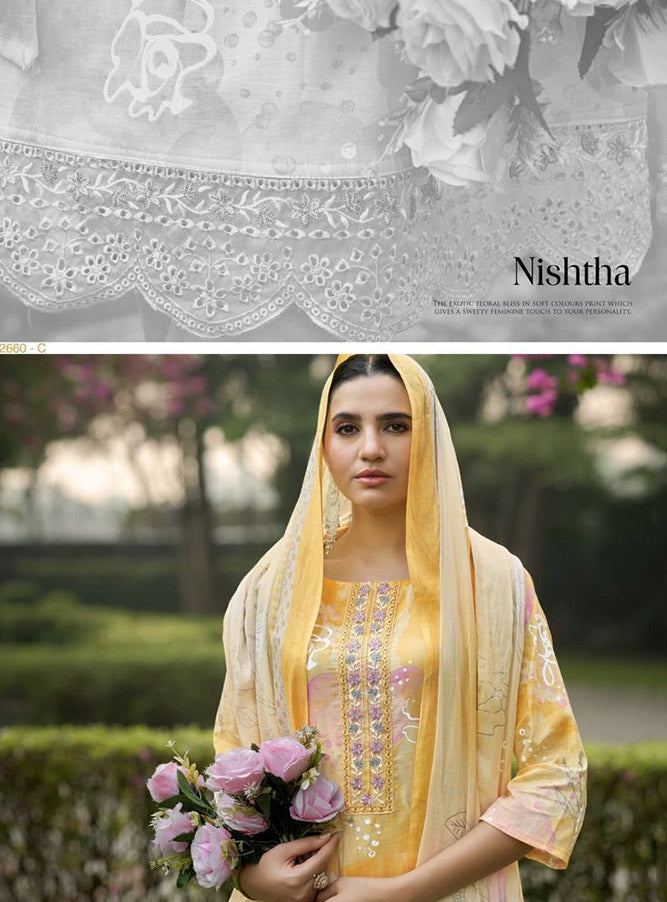 Pure Cambric Cotton Yellow Unstitched Suit Dress Material for Women