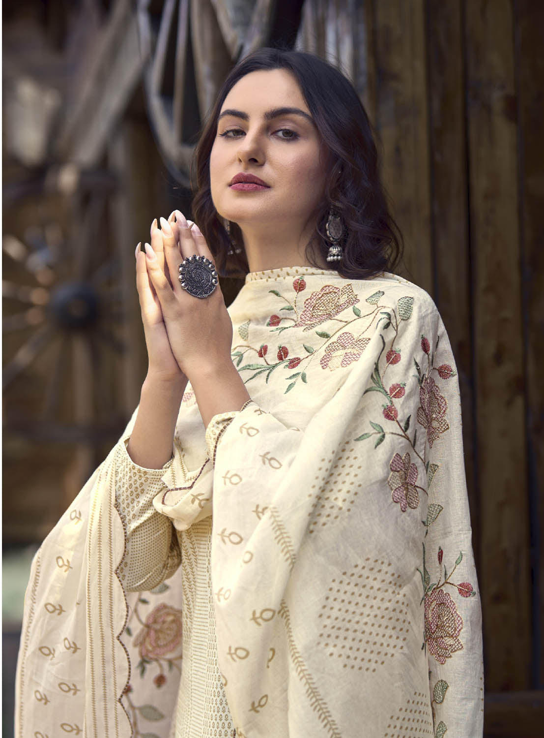 Pure Cotton Party Wear Cotton Women Unstitched Salwar Suit Cream