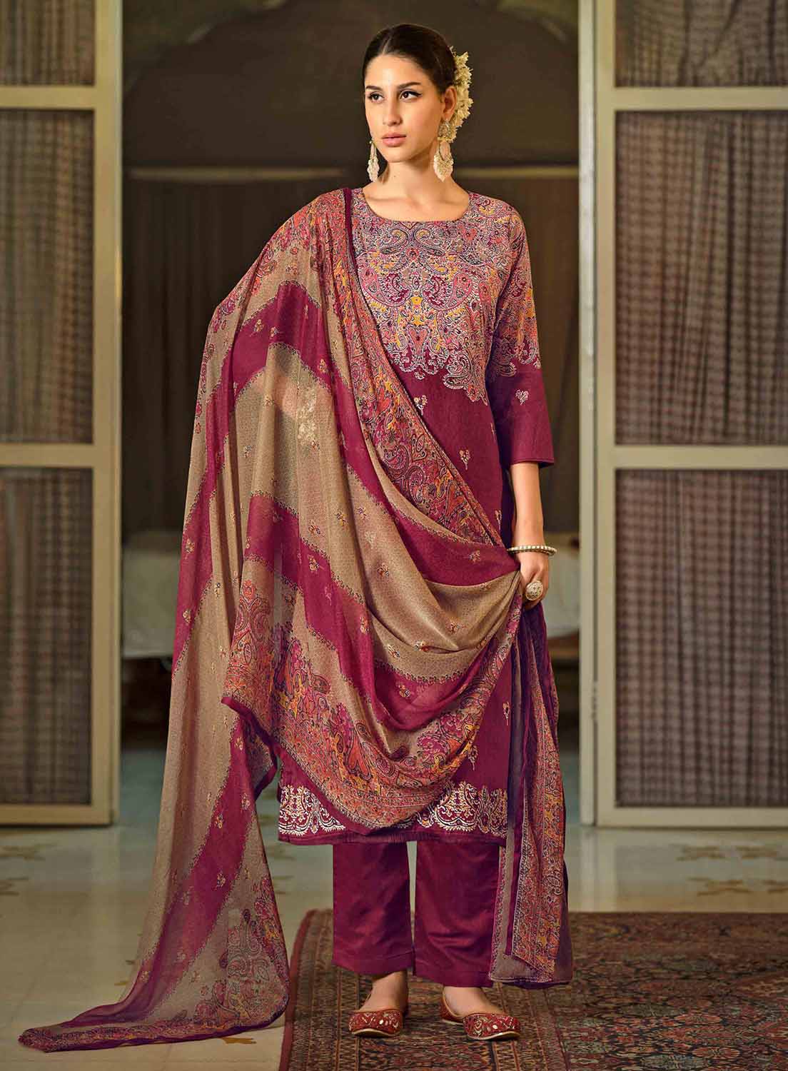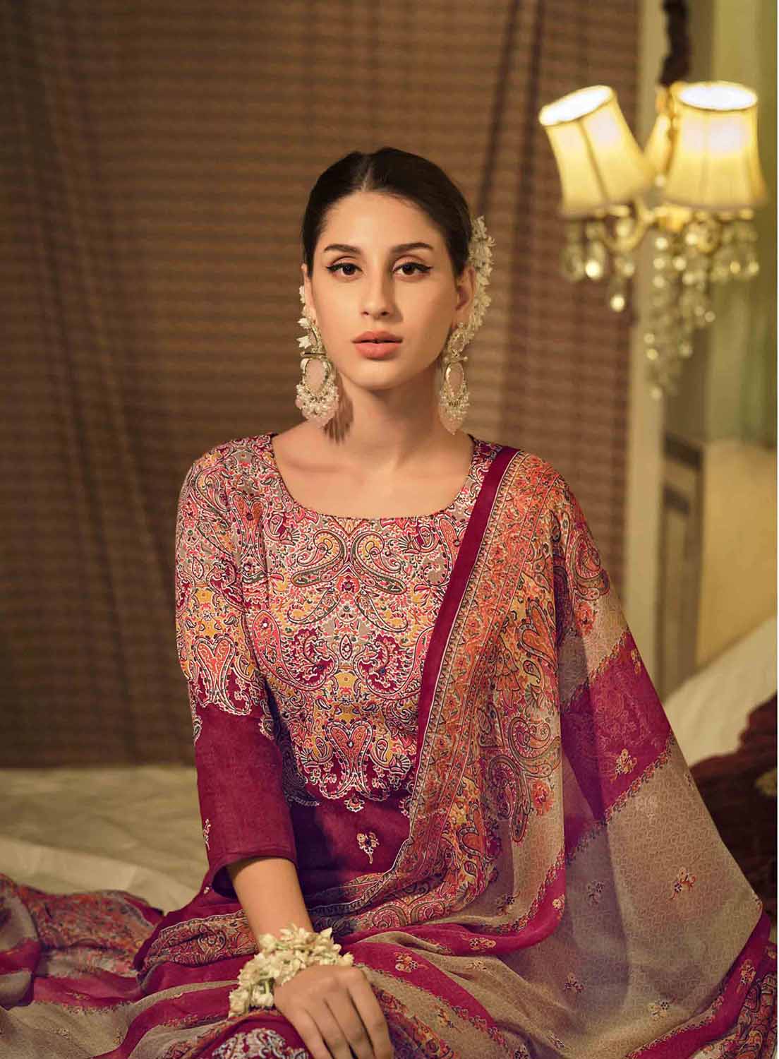 Pure Cotton Printed Maroon Unstitched Suit Dress Material for Ladies