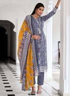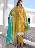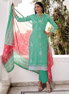 Pure Cotton Printed Unstitched Suit Material with Mirror and Lace Work