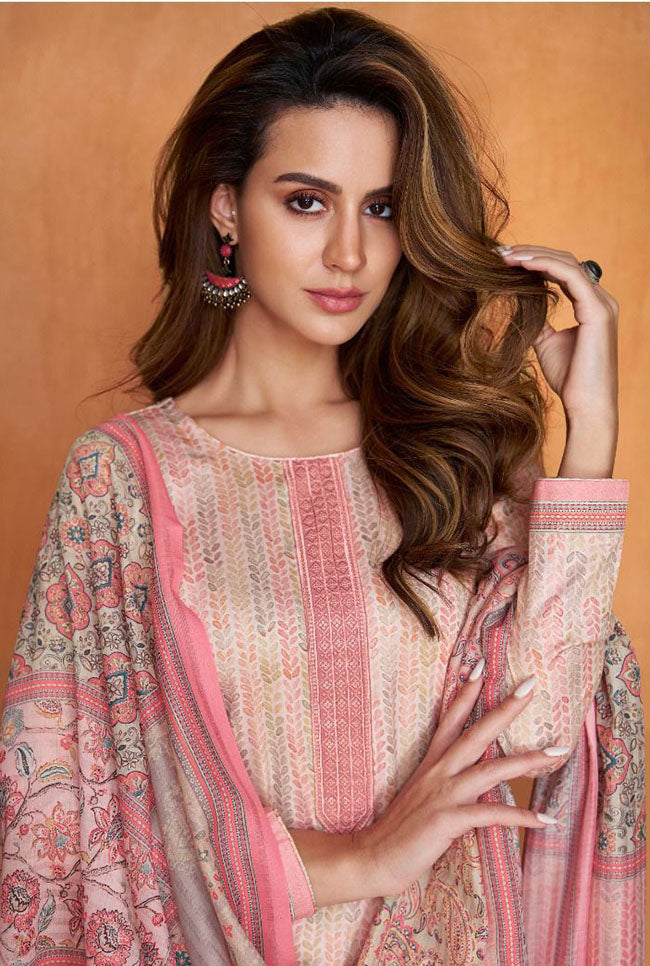 - Top - Pure Cotton Satin Digitally Printed with Elegant Embroidery 2.5 mtr