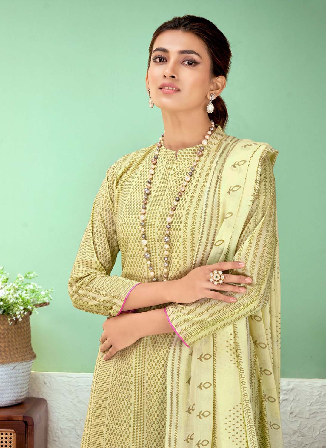 Pure Lawn Cotton Women Salwar Suit Unstitched Olive Green