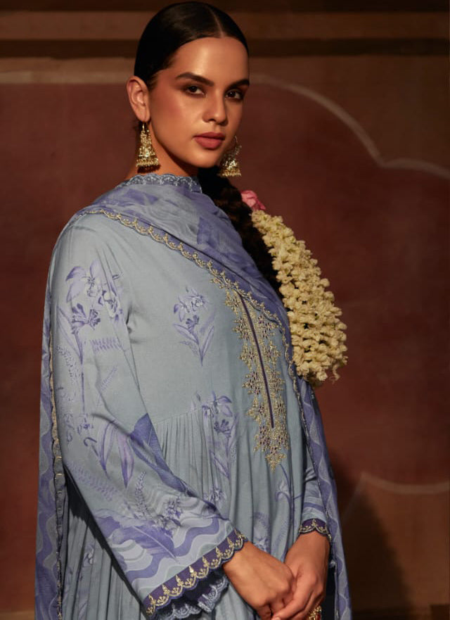 - Fabric Top: Pure muslin Printed with embroidery on neckline and sleeves