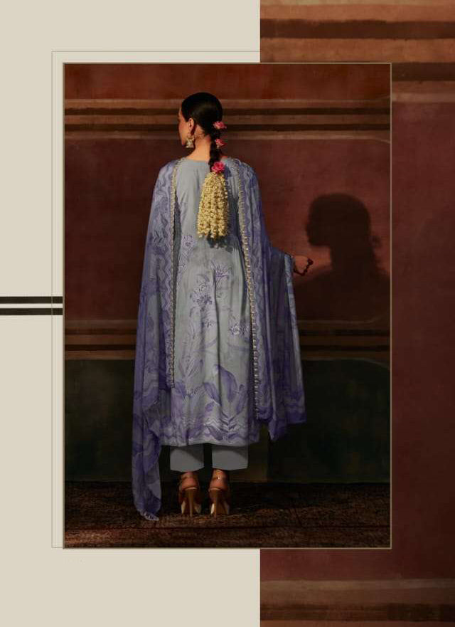 Pure Muslin Blue Unstitched Suit Dress Material with Embroidery