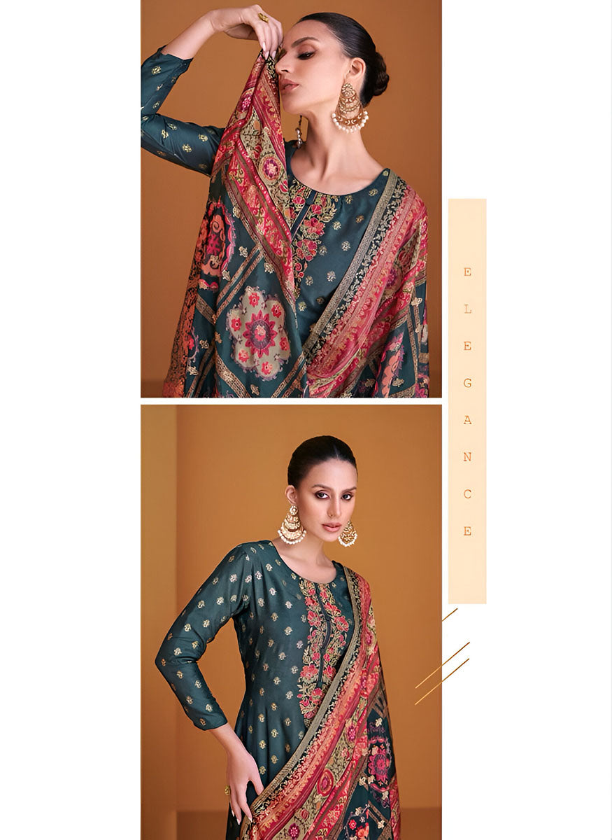 Pure Muslin Jacquard Unstitched Salwar Suit Material for Women