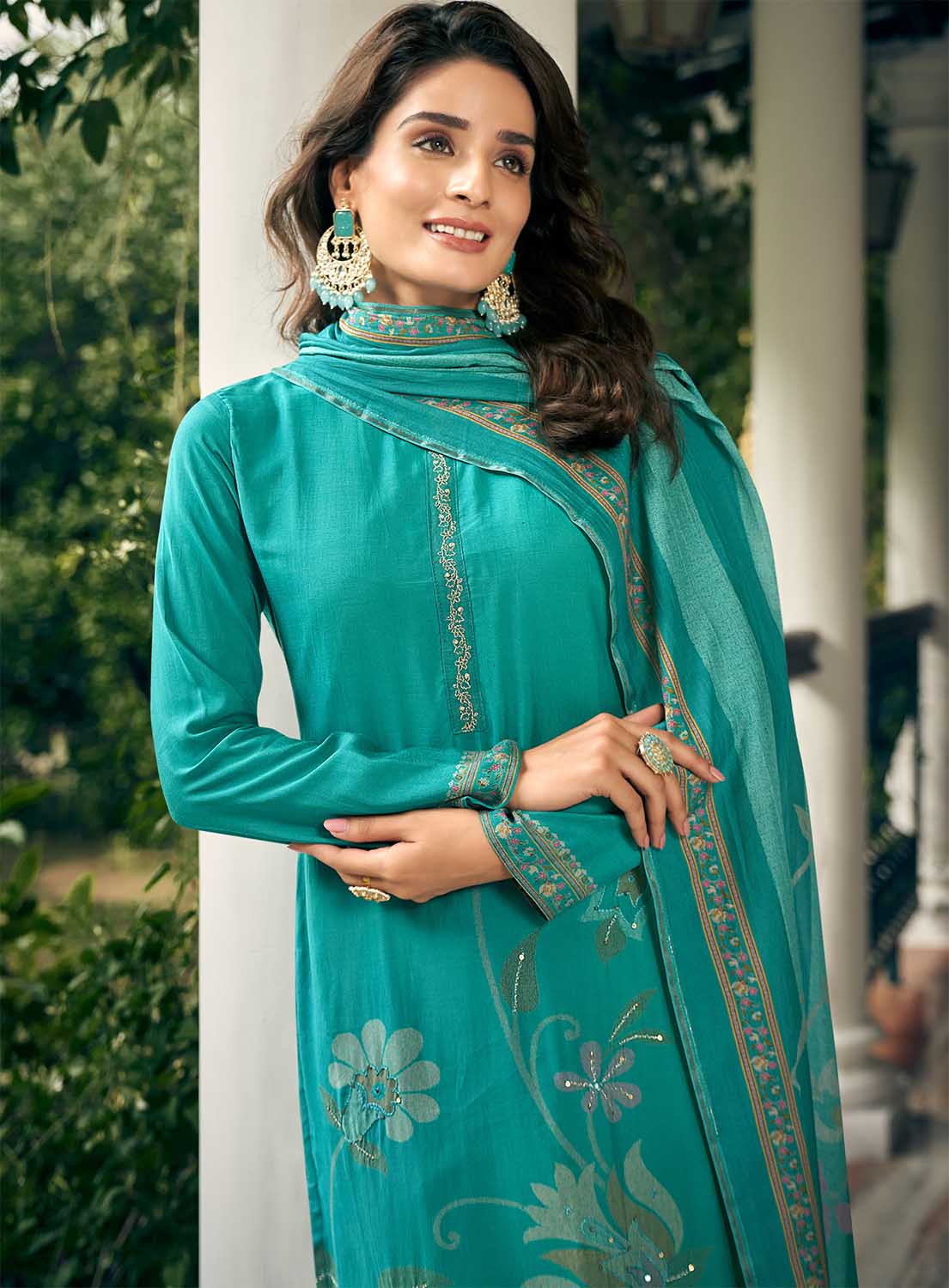 Pure Muslin Printed Party Wear Unstitched Women Suit Material