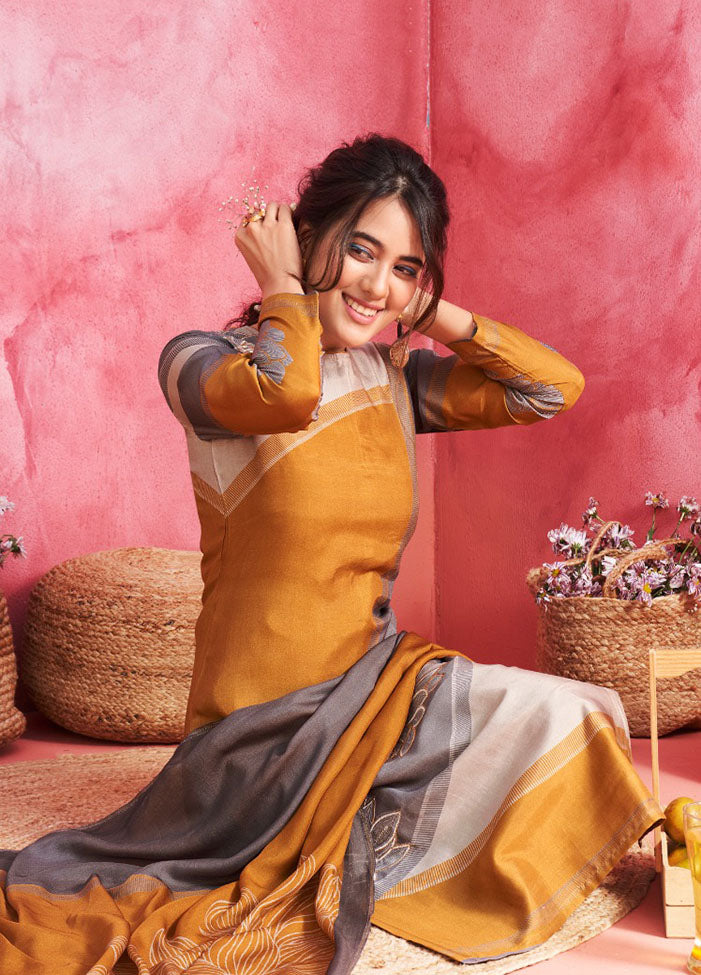 Pure Muslin Unstitched Yellow Salwar Suit Dress Material for Women