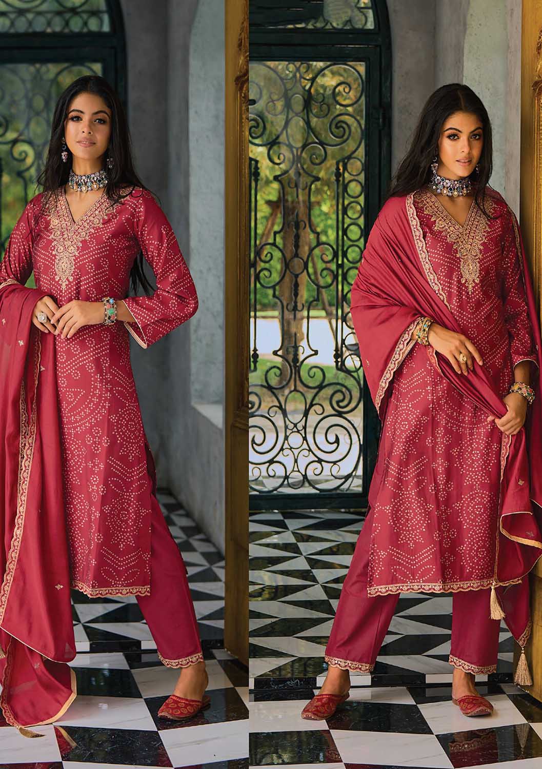 Pure Muslin with Heavy Embroidery Women Suit Dress Material Red