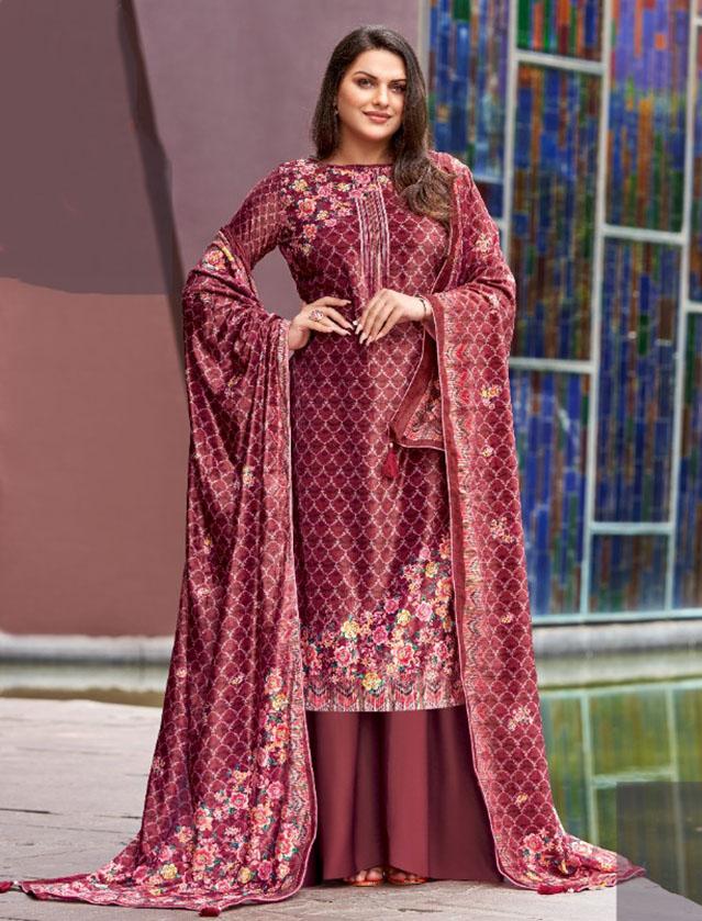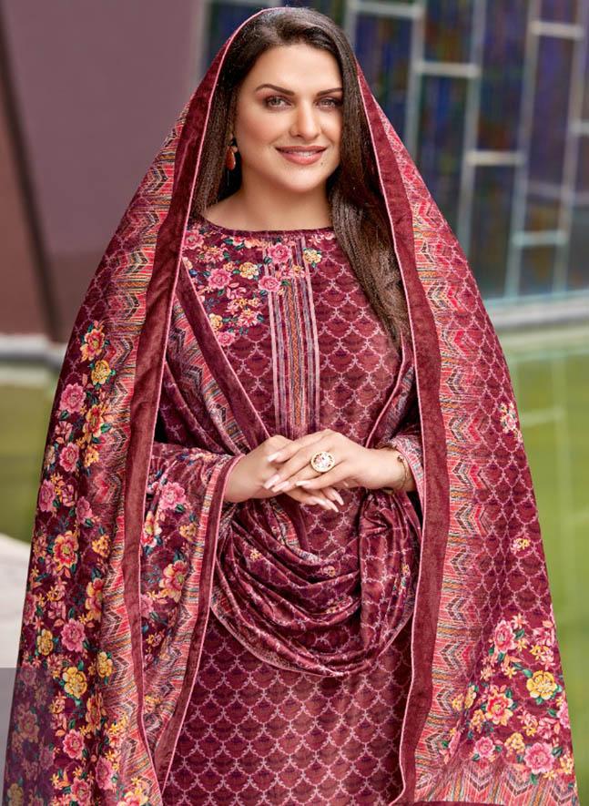 Pure Viscose Velvet Pashmina Maroon Winter Unstitched Suit Material