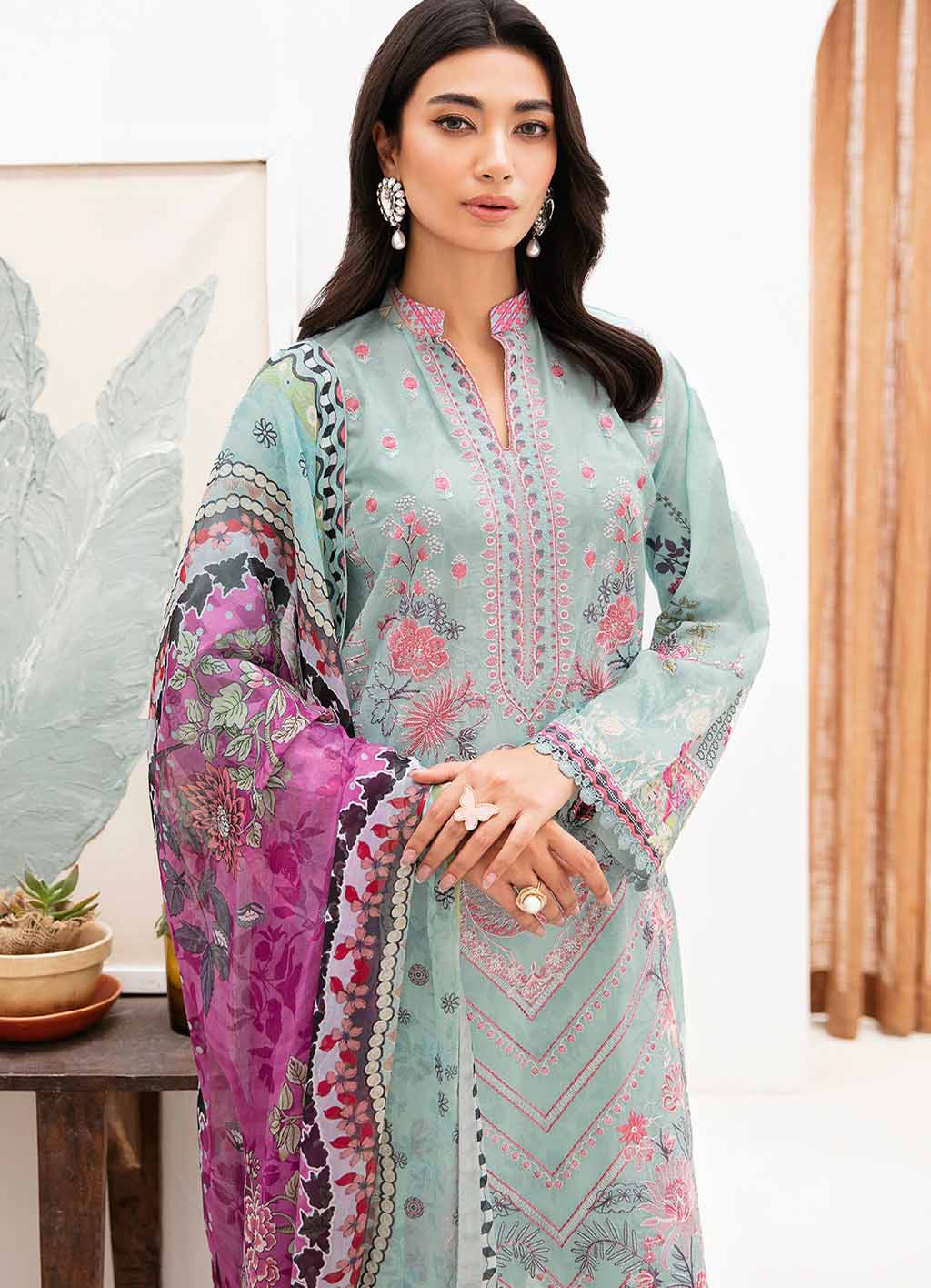 - Digital printed embroidered lawn front