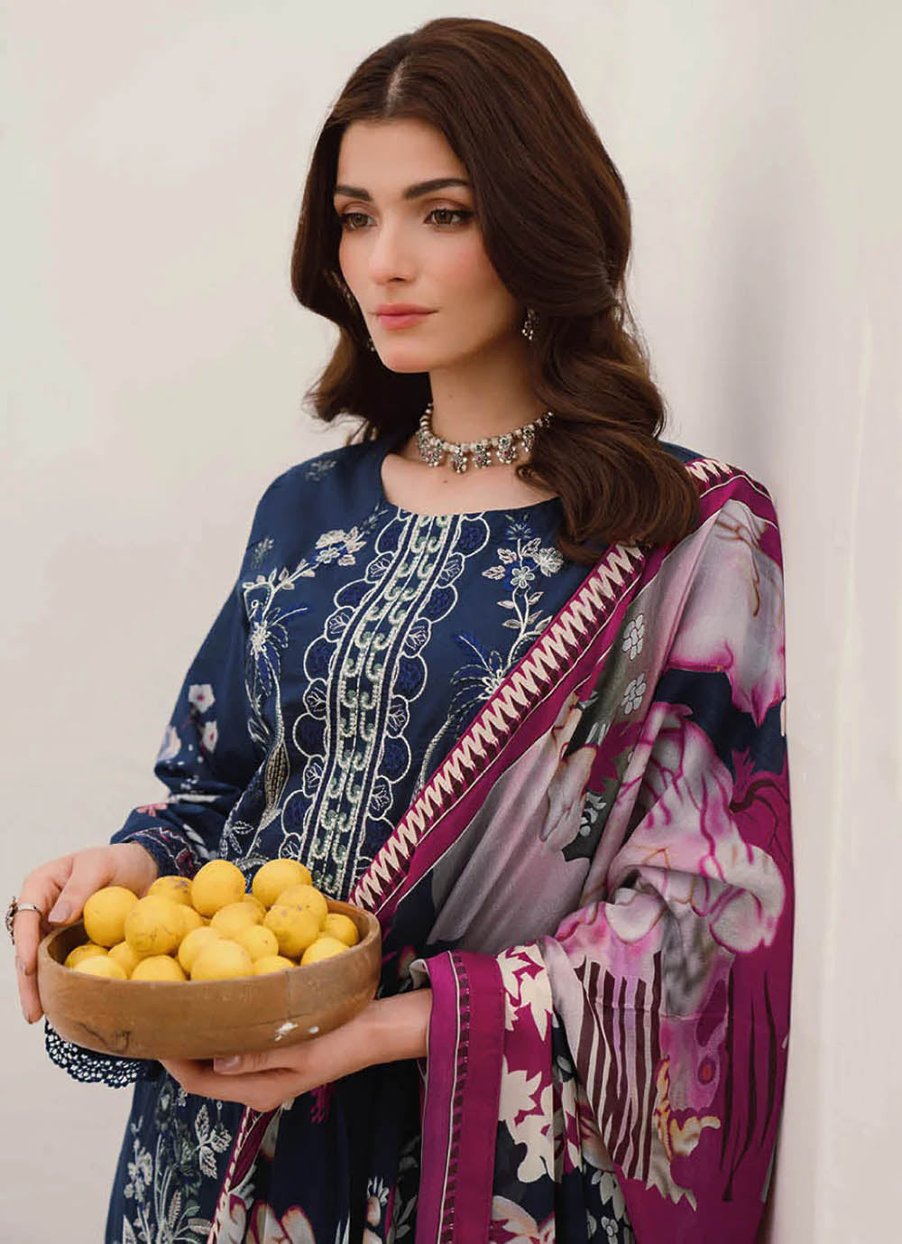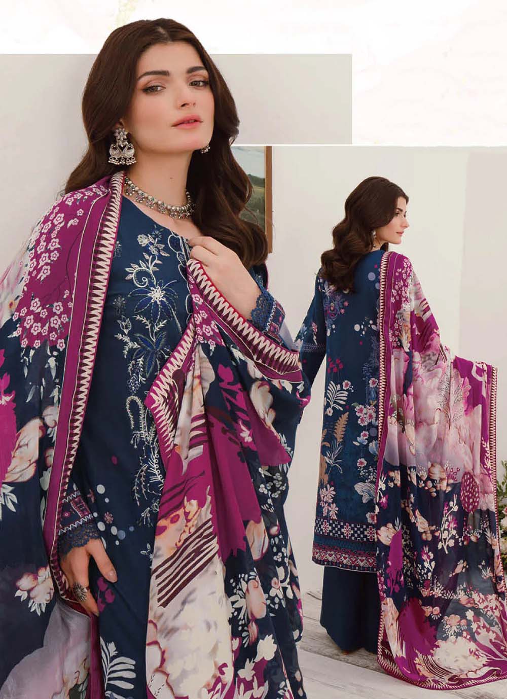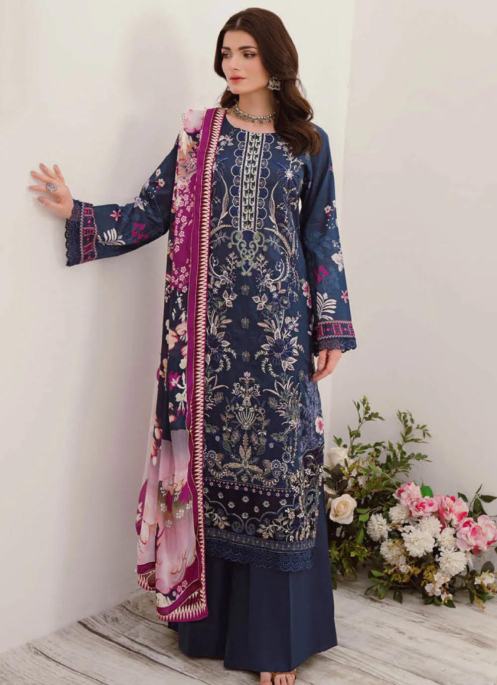 Ramsha Unstitched Blue Pure Pakistani Lawn Suit with Silk Dupatta