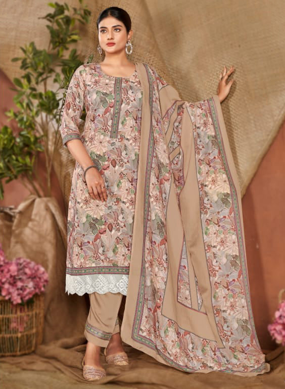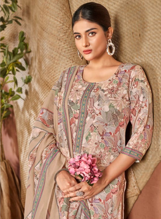 Rivaa Brown Unstitched Pure Cotton Satin Salwar Suit Material for Women