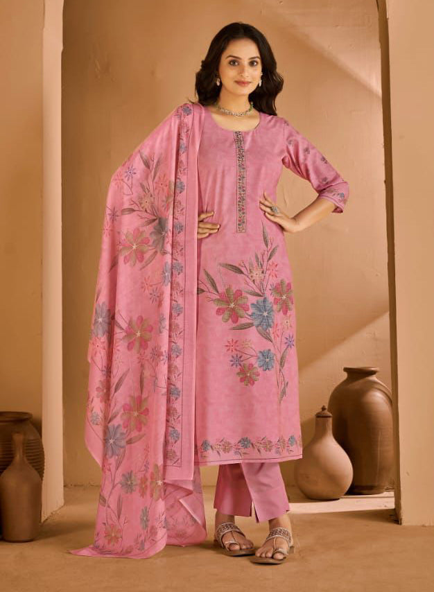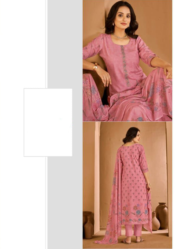 Rivaa Latest Pink Unstitched Pure Cotton Salwar Suit Material