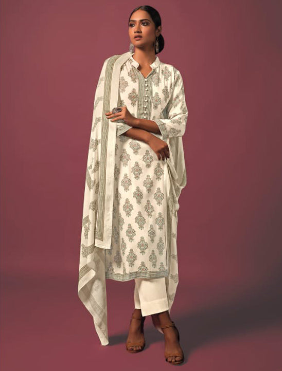 Pashmina Off-White Unstitched Winter Suit Dress Material for Women