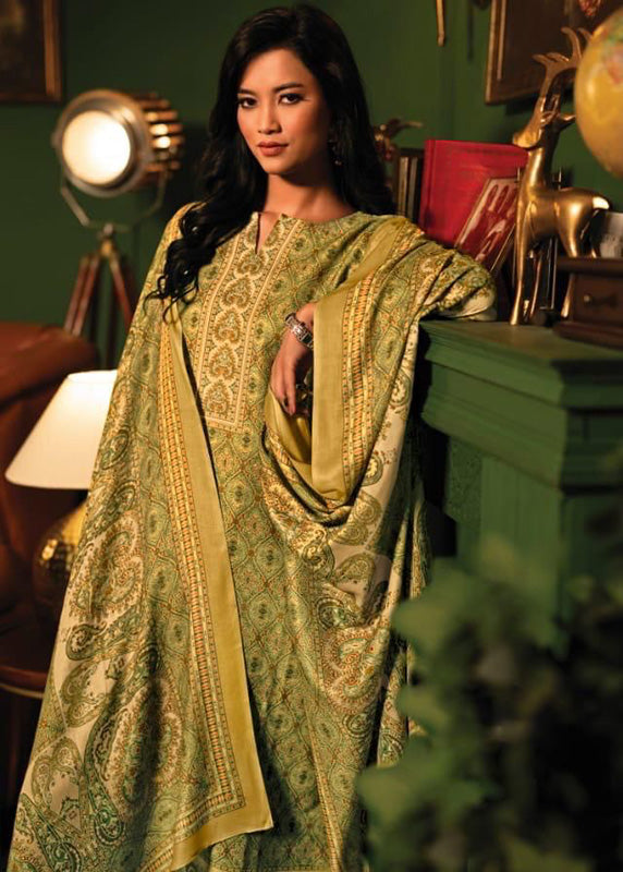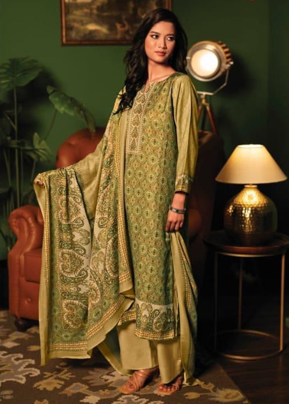 Rivaa Unstitched Mehendi Green Cotton Satin Suit Dress Material