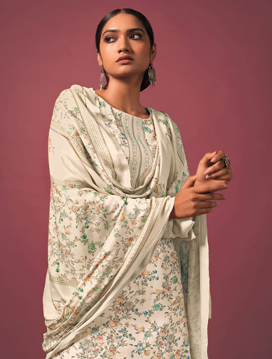 Rivaa Unstitched Off-White Pashmina Women's Winter Suit Dress Material