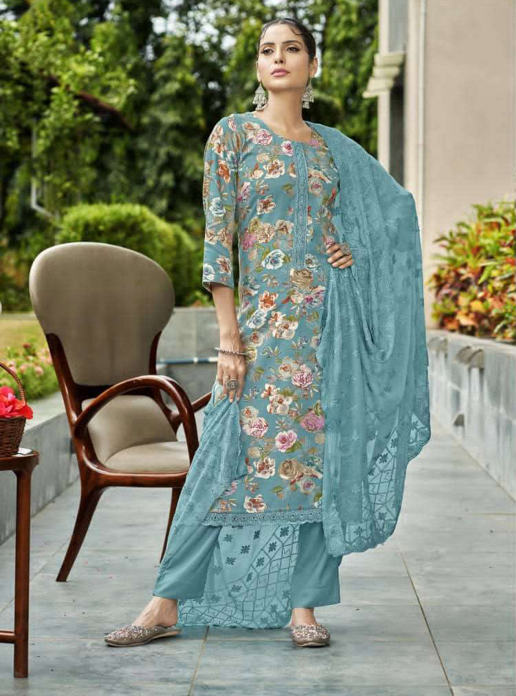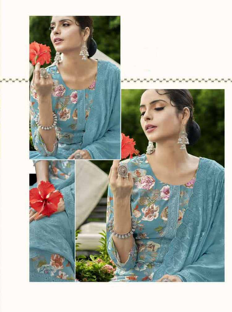 Rivaa Unstitched Printed Pashmina Winter Suit Material with Chiffon Dupatta