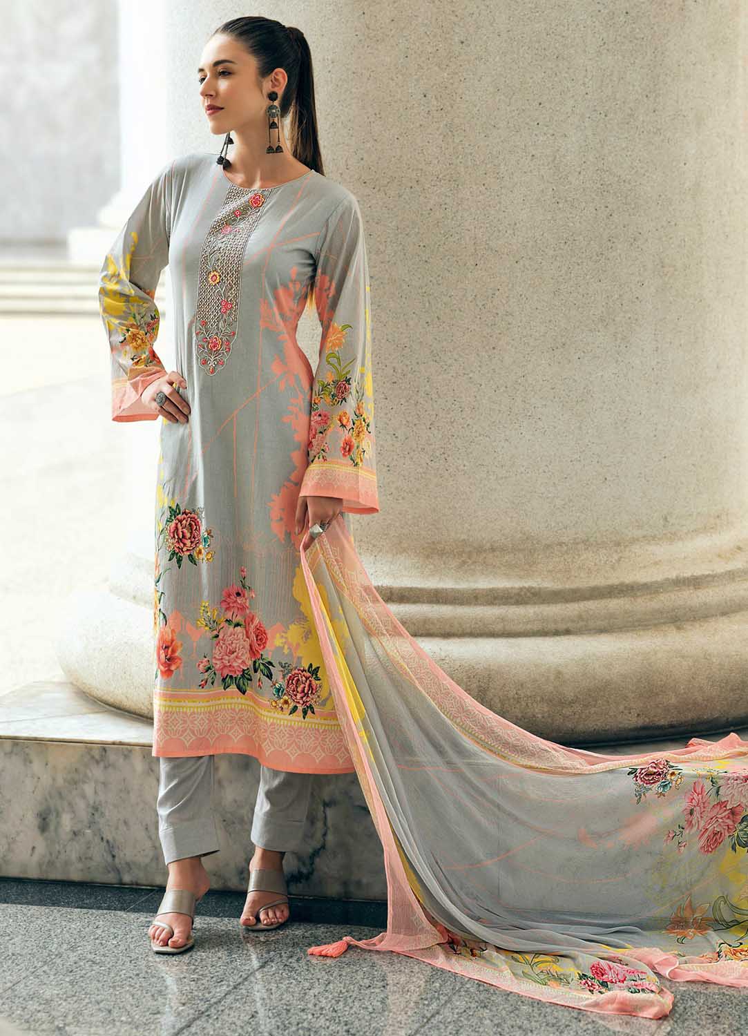 Sadhana Grey Unstitched Pashmina Winter Suit Dress Material for Ladies