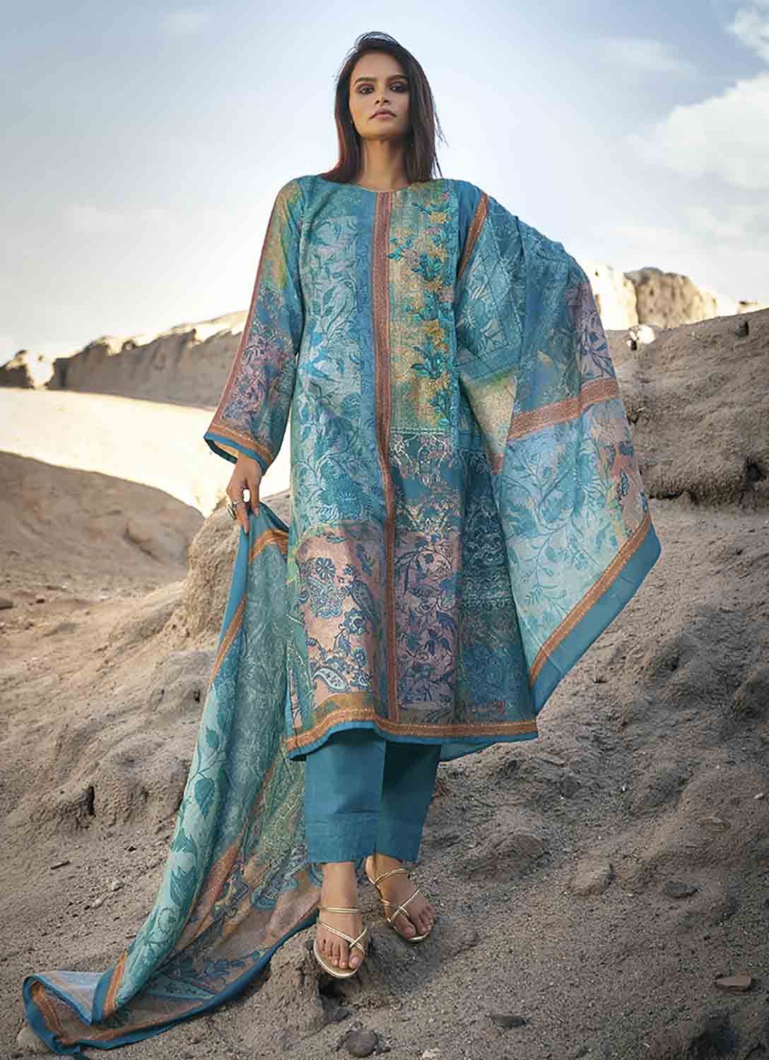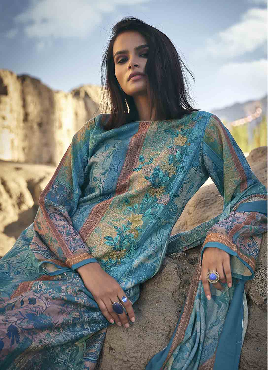 Pashmina Teal Blue Winter Salwar Suits Dress Material for Ladies