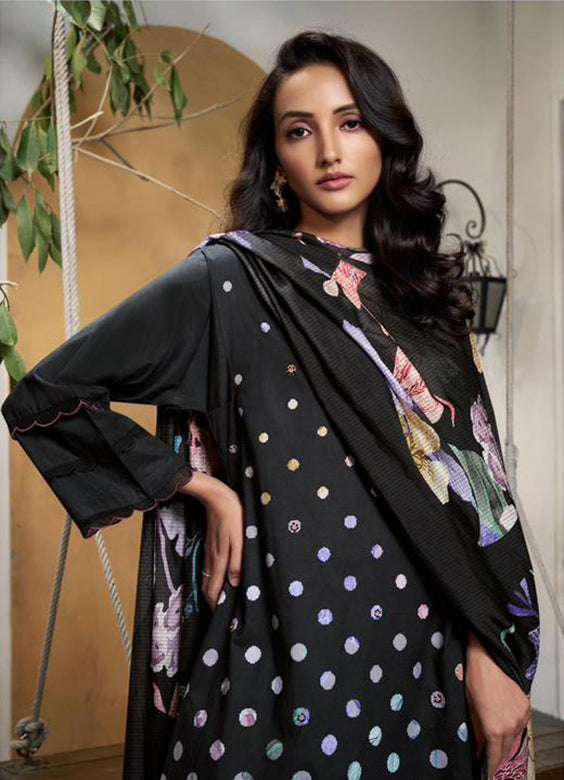 Sahiba Pure Cotton Lawn Black Unstitched Suit Material for Women