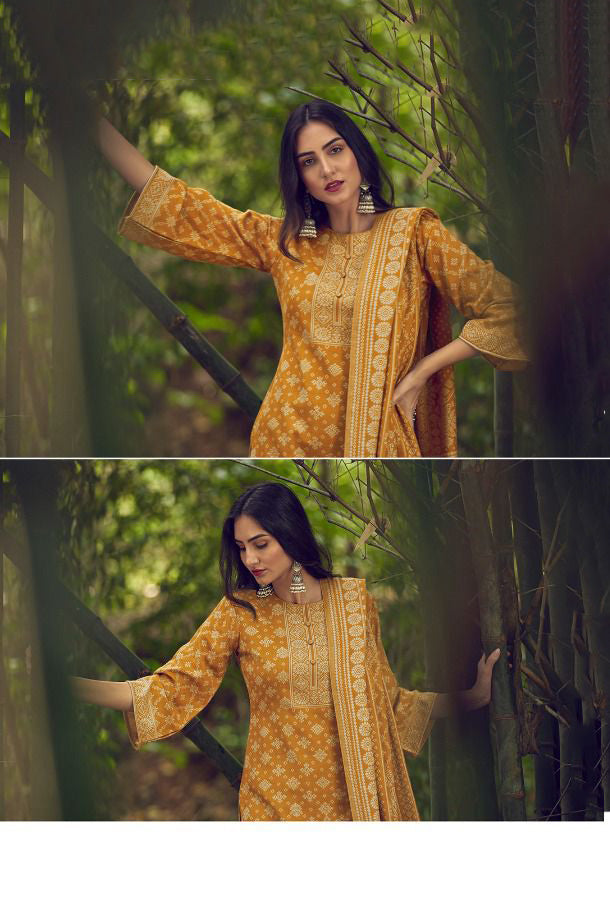 Handloom Weaving Pashmina Yellow Unstiched Winter Suit