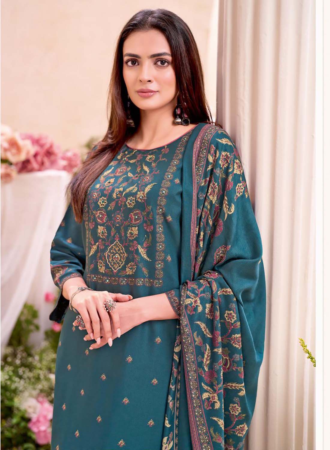 Teal Viscose Pashmina Unstitched Winter Salwar Suit Material for Women