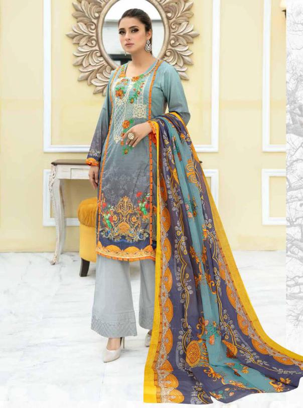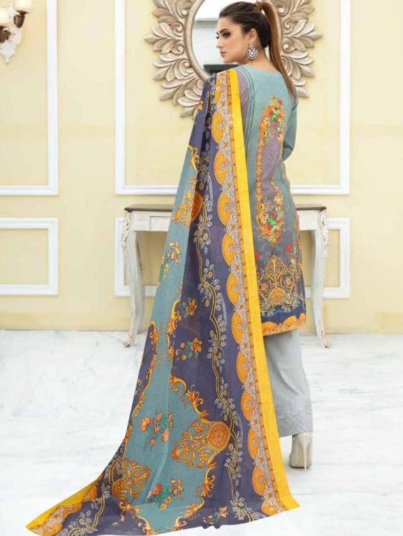 Unstitched Cotton Blue Salwar Suit Pakistani Dress Material