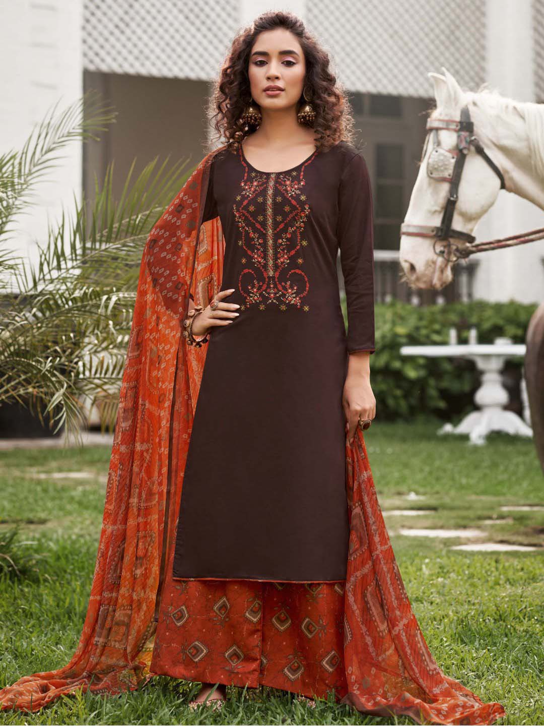 Women Unstitched Cotton Salwar Suit Dress Material with Embroidery
