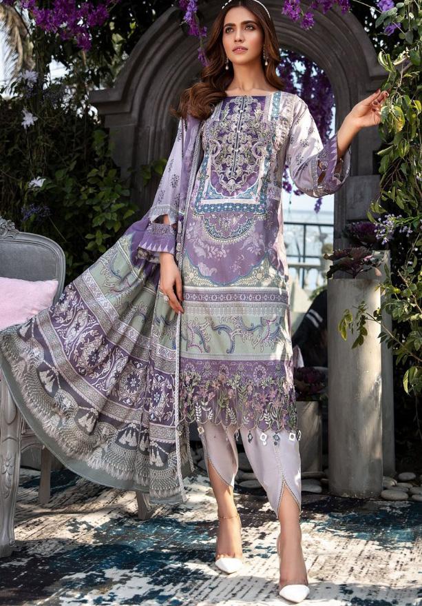Unstitched Purple Pakistani Cotton Suit Dress Material