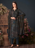 Unstitched Green Pure Pashmina Winter Suit Dress Material for Women