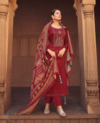 Unstitched Pink Jam Cotton Salwar Suit Material with Muslin Dupatta