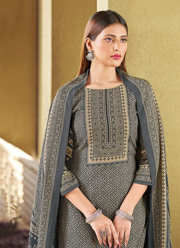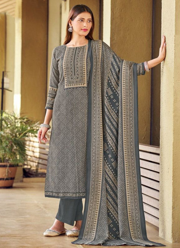 Unstitched Grey Pashmina Woolen Winter Suit Dress Material for Women