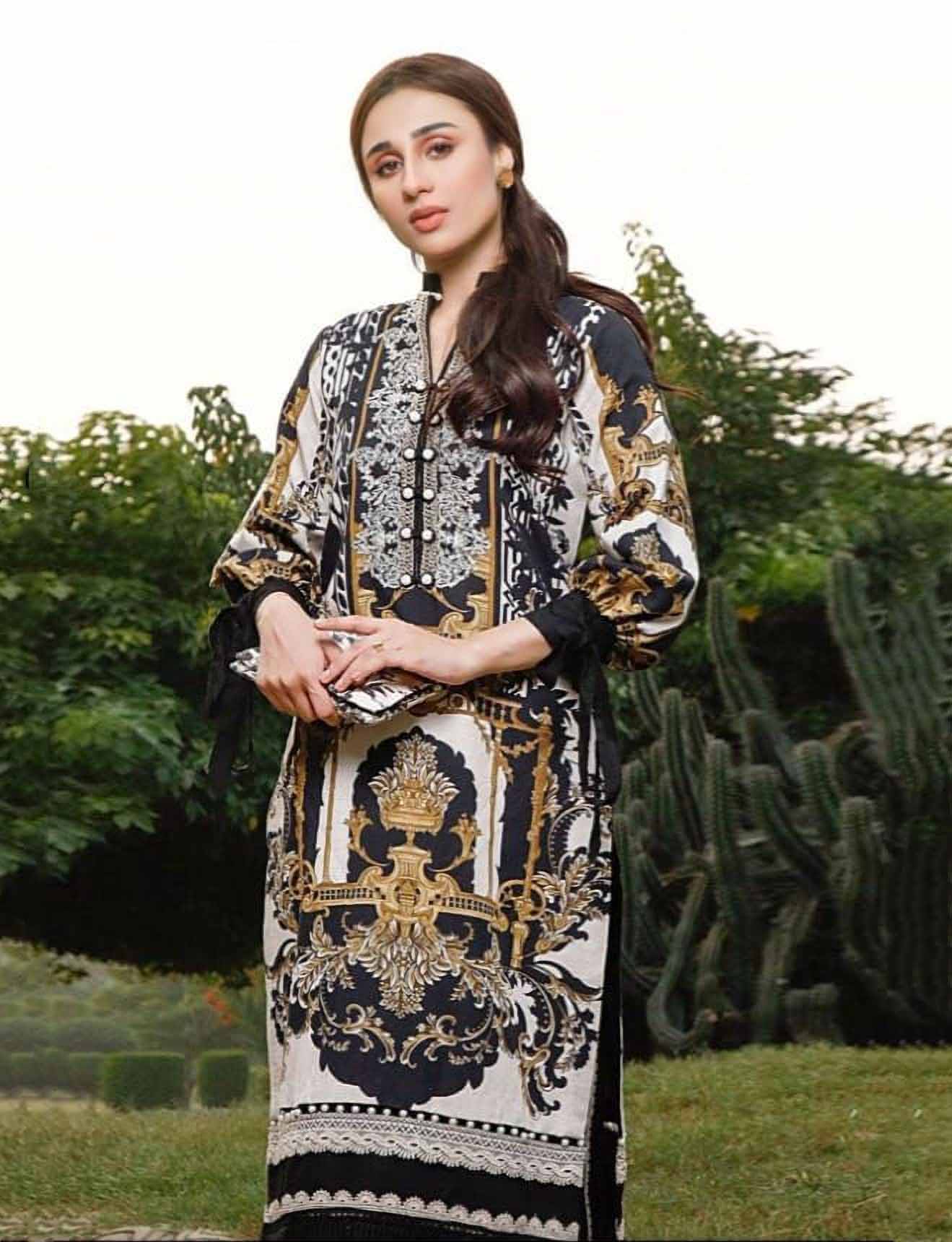 Unstitched Lawn Cotton Black Printed Pakistani Style suits