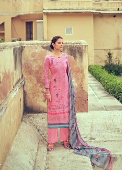 Unstitched Lawn Cotton Pakistani Suits Pink Dress Material