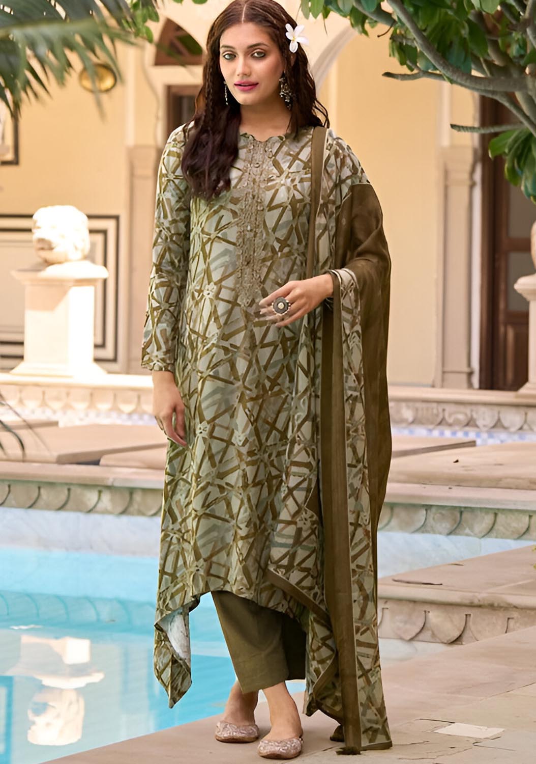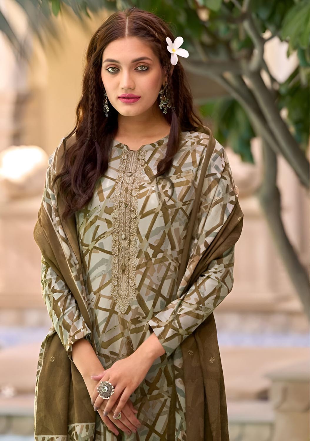 Unstitched Olive Green Pashmina Winter Dress Suit Material for Women