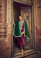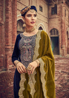 Unstitched Green Winter Velvet Salwar Suits Material for Women
