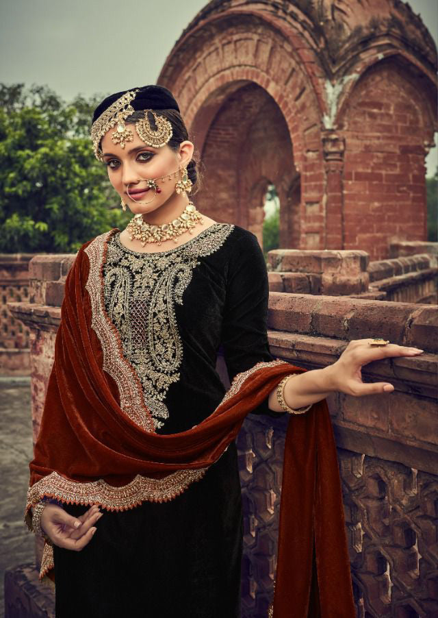 Unstitched Black Winter Velvet Salwar Suits Material for Women