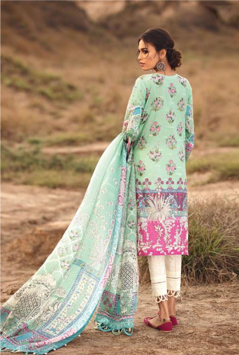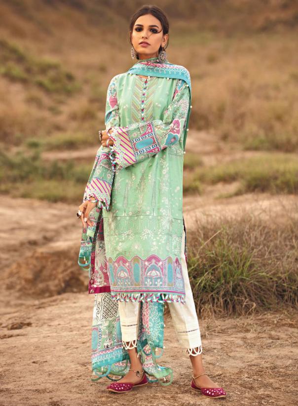 Unstitched Green Printed Pakistani Cotton Suit Dress Material