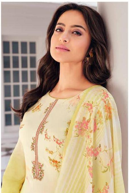 Unstitched Printed Embroidery Yellow salwar suit Dress Material