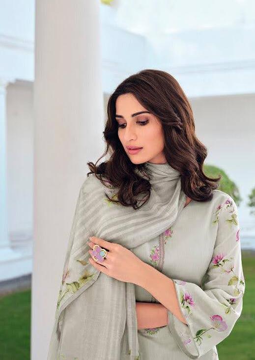 Unstitched Printed Embroidery Grey salwar suit Dress Material