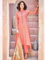 Unstitched Pure Lawn Cotton Orange Suit Material with Embroidery