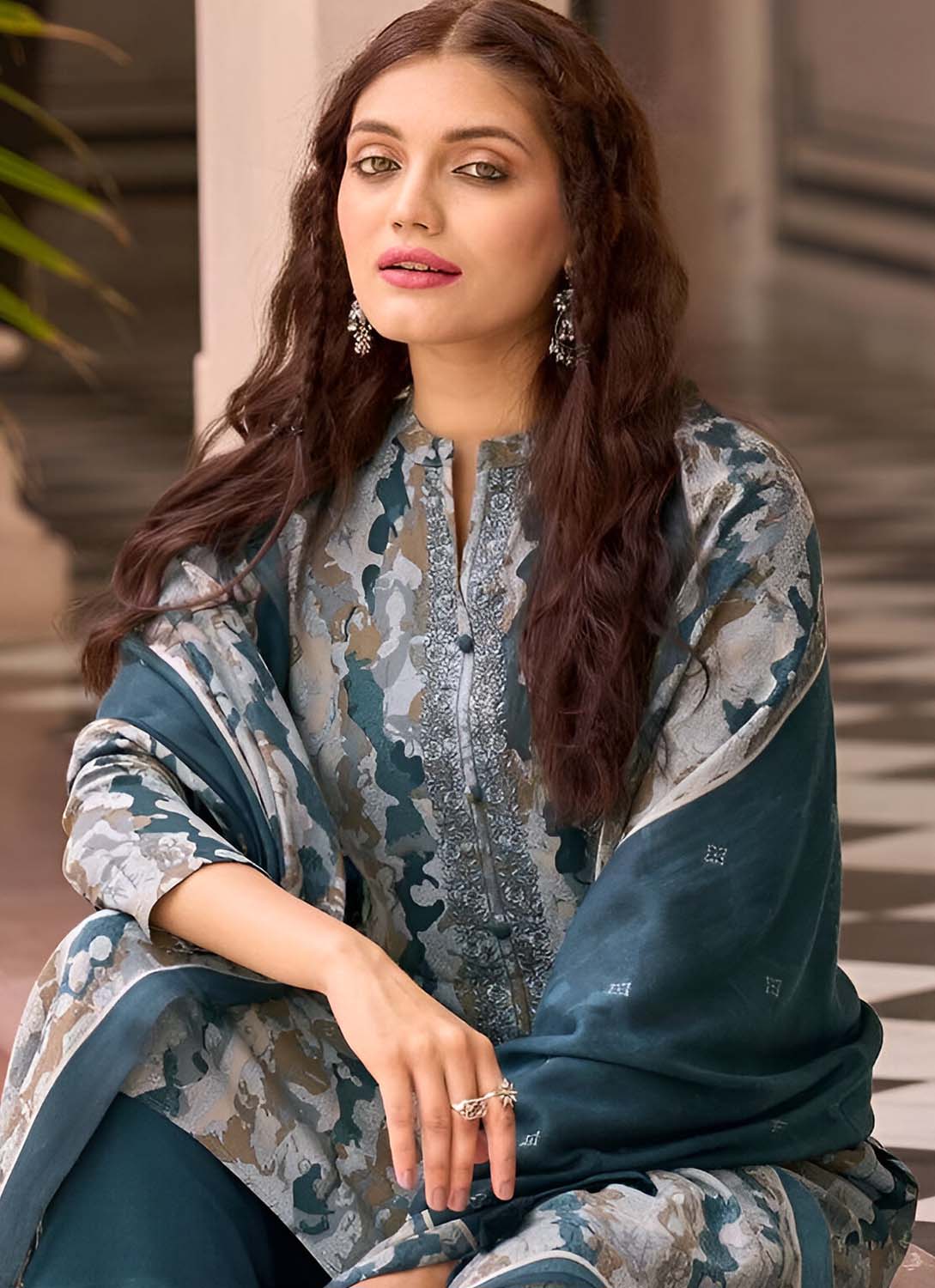 - Dupatta: Woolen shawl with digital print 2.25 Meters