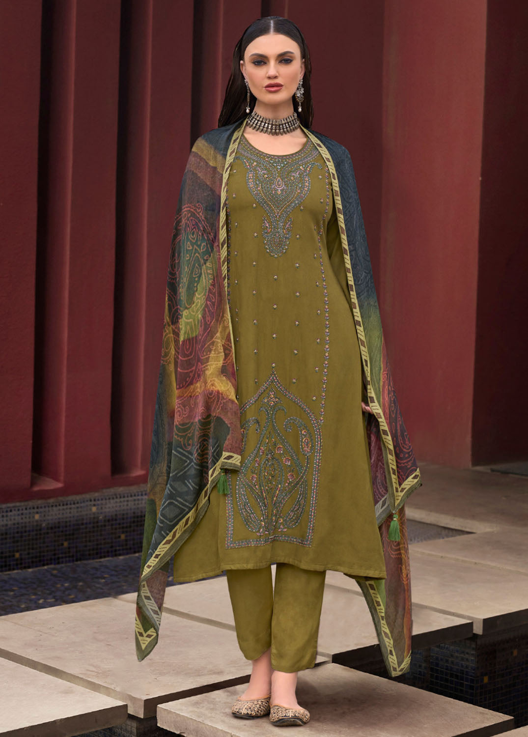 - Dupatta: Bemberg Gajji Digital Printed with Tassels