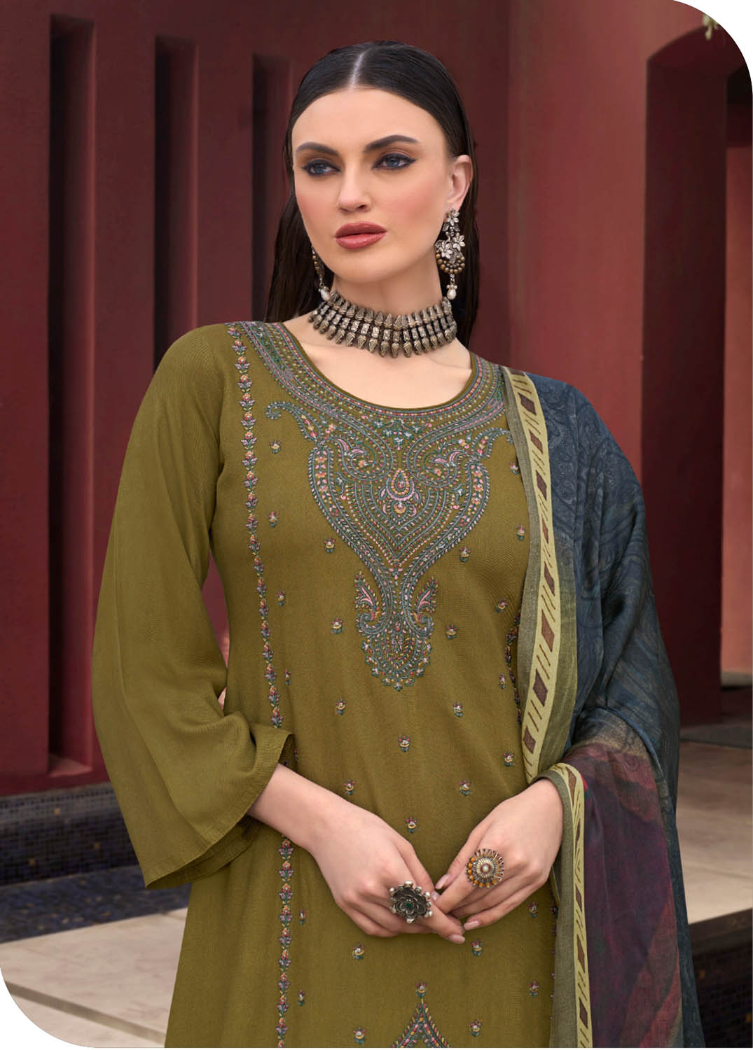 - Fabric Top: Pure Wool with Heavy Embroidery
