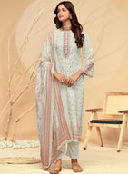 White Pure Cotton Unstitched Suit Set Dress Material for Women