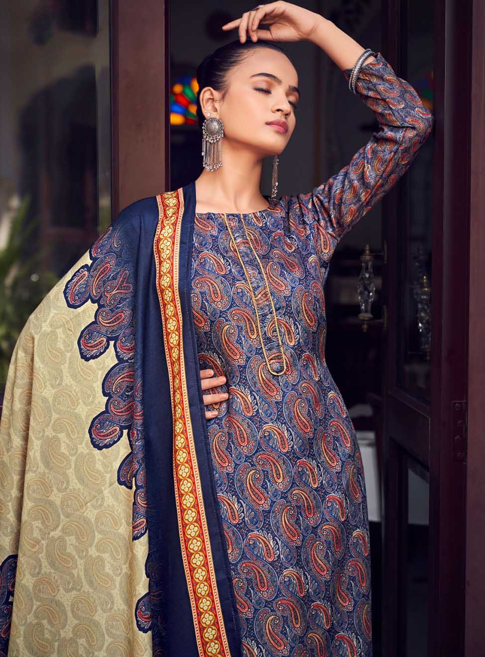 Blue Unstitched Pashmina Winter Salwar Suit Dress Material for Women